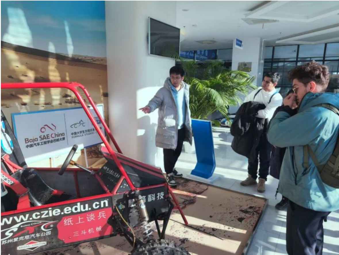 在参访环节中,中拉青年科研人员首先走进中国汽车工程学会科普教育基地,现场观摩了中国大学生方程式系列赛事赛车。通过对赛车结构、动力系统及工程设计理念的讲解,来访人员近距离了解了中国高校在工程实践和创新人才培养方面的成果。