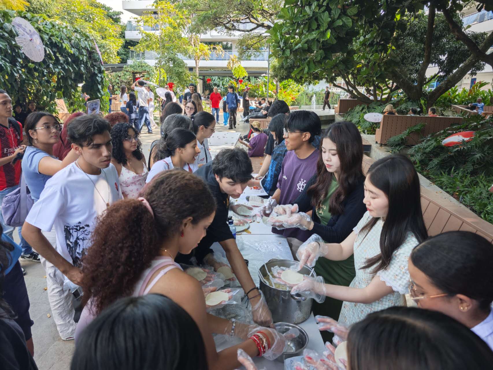 新春暖意续,喜乐伴朝夕。继16日温馨的贴春联活动之后,2月17日下午三点,在卡利大学“森林”休闲区,一场热闹非凡的“包饺子,迎新春”活动如期拉开帷幕。学测中心团队提前谋划、精心筹备,协调卡利大学校内多个部门及相关教师,从饺子皮、馅料等物料的筛选采购,到活动流程的反复打磨,用周密的筹备执行在卡利大学首次开展的庆新春中国文化活动。